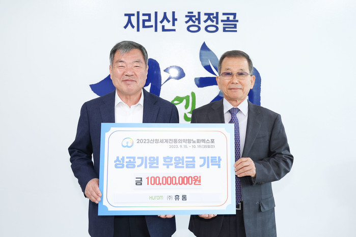 이승화 조직위원장은 “건강이라는 경영철학은 실천하는 ㈜휴롬이 엑스포 공식후원사로 참여하게 되어 매우 뜻깊게 생각하며, 산청엑스포를 통해 한방항노화산업이 한 단계 더 도약하는 계기가 될 수 있도록 철저히 준비하겠다”고 말했다.