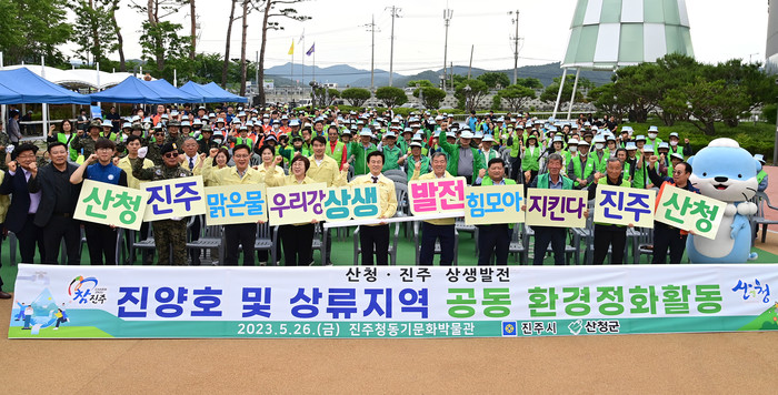 환경정화활동에 앞서 열린 기념식에서 진주시와 산청군의 상생발전을 더욱 공고히 하자는 의지를 표명하고 진양호 및 상류지역의 수질보전에 힘을 모으자는 의미로 ‘맑은물 우리강 힘모아 지킨다’는 구호를 외치며 진주시의 캐릭터 하모에게 ‘상생발전’ 피켓을 건네는 퍼포먼스를 펼쳐 눈길을 끌었다.