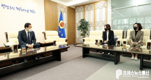 [프레스뉴스] 장현준 기자= 장현국 경기도의회 의장(더민주, 수원7)은 14일 의장 접견실에서 경기도사회복지관협회 윤연희 회장과 조혜연 부회장을 만나 사회적 약자와 소외계층을 비롯해 지역주민 전반에 대한 복지증진 방안을 논의했다.