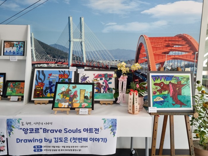 이번 미술 전시회는 브레이브 소울즈 회원의 자녀와 비회원(사천시 인근 거주) 자녀 등 22명의 발달장애 아동이 참여해 총 80여 점의 작품을 전시한다.