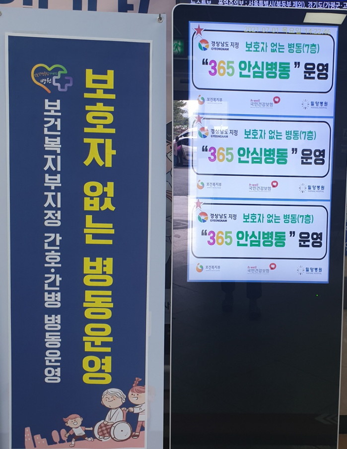 [프레스뉴스] 정재훈 기자= 밀양시는 맞벌이 부부 증가 등 사회형태의 변화에 따른 사회 문제를 해결하고, 환자와 가족의 간병비 부담을 경감하기 위해 밀양병원, 밀양윤병원에서 365안심병동 사업을 시행한다.