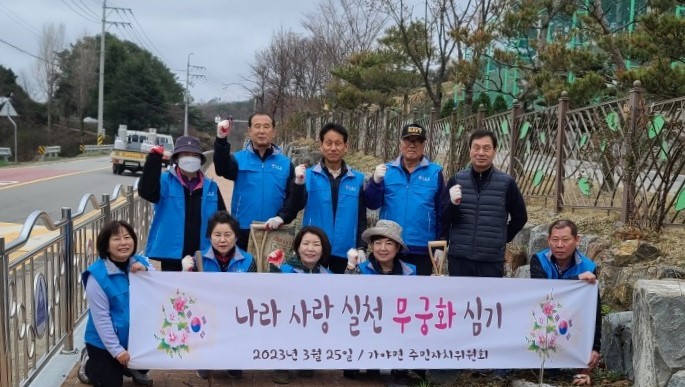 이정범 주민자치회장은 “바쁜 일정에도 불구하고 자발적으로 무궁화 심기 활동에 참여해주신 회원들과 가야면장께 감사드리며 이번 활동을 통해 나라꽃에 대한 지역민들의 관심이 더 커지길 바란다”고 말했다.