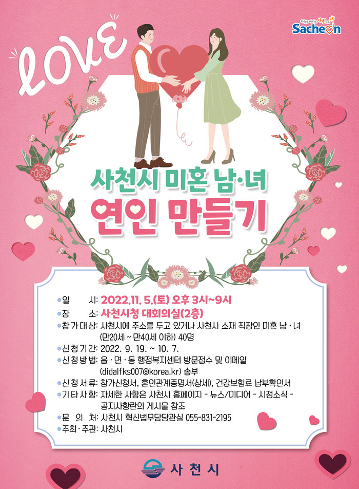 | ▲ 사천시, 미혼남녀 연인 만들기 행사 홍보물(자료제공=사천시) |