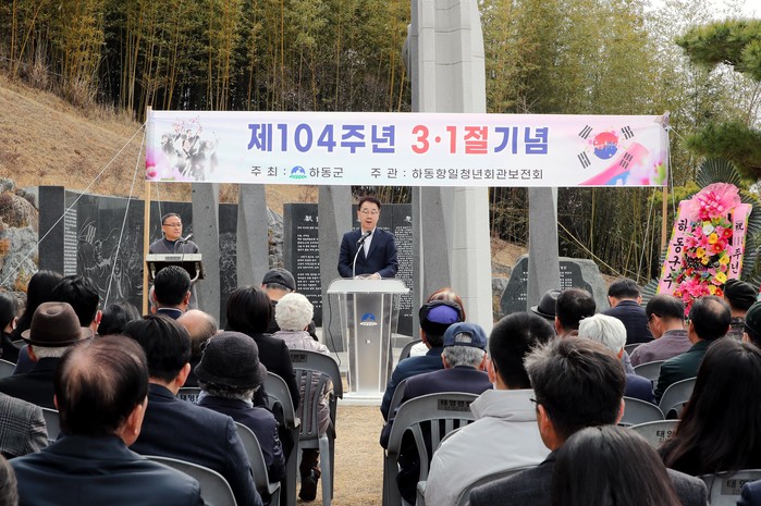 하승철 군수는 축사에서 “104년 전 이 땅에 메아리친 3·1운동은 암울한 일제 식민통치에서 벗어나 민족의 독립과 자주의식을 세계만방에 떨친 운동”이라며 “그 숭고한 뜻을 받들어 세상에 하나뿐인 하동을 만드는 동력으로 승화시키겠다”고 밝혔다.