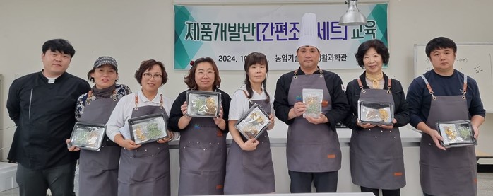 | ▲고성군은 지난 5일 고성군농업기술센터에서 지역농‧수산물을 활용한 제품개발반(간편조리세트) 교육 수료식을 개최했다 (사진=고성군) |