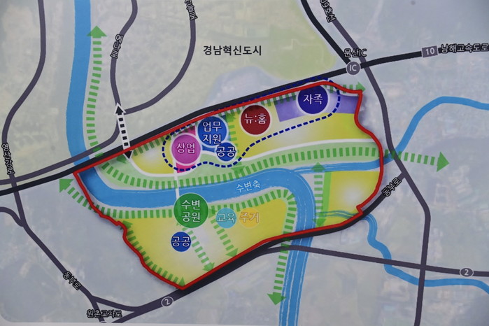 현재 문산읍은 혁신도시와 도로체계와 생활권이 분리되어 상대적으로 소외된 지역이나, 이번 문산지구 선정과 향후 지방도 1009호선과 국도2호선 연결도로 설치, 10분 내 거리의 신진주역, 2025년 준공 예정인 여객자동차터미널로 인해 경남 서부권 광역교통의 요충지로 새롭게 거듭날 여건을 갖추게 되었다.