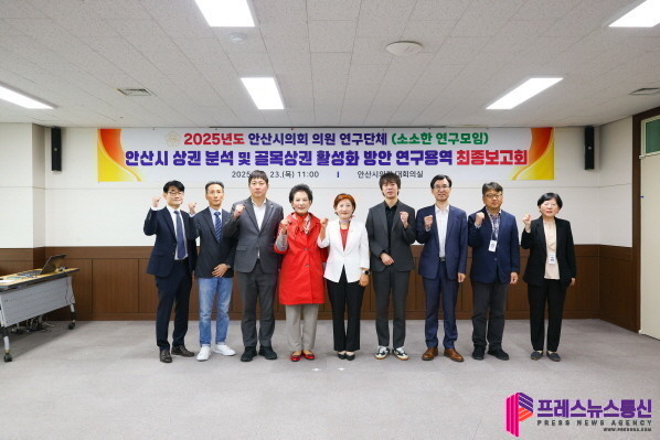[프레스뉴스] 류현주 기자= 안산시의회 의원연구단체 ‘소소한 연구모임(대표의원 현옥순)’이 23일 의회 대회의실에서 안산 골목상권의 지속가능한 성장 방안을 모색한 연구용역 최종보고회를 개최했다.