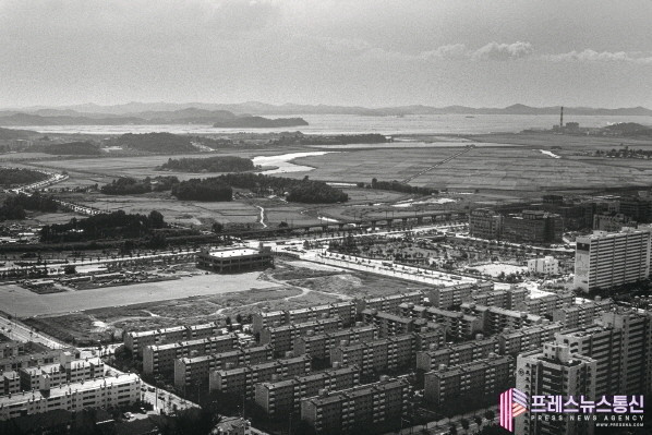 | ▲1992년 노적봉 정상에서 바라본 안산 고잔뜰의 옛 모습(사진=안산문화원 제공) |