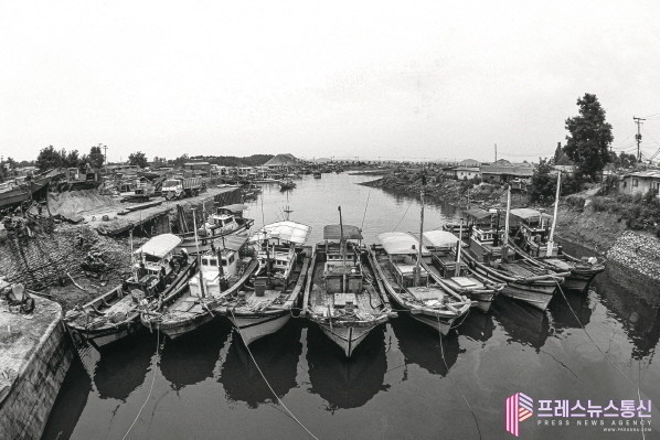 | ▲1993년도 안산시 사리포구 전경, 시화방조제 공사 직전의 어촌 풍경 모습.(사진=안산문화원 제공) |